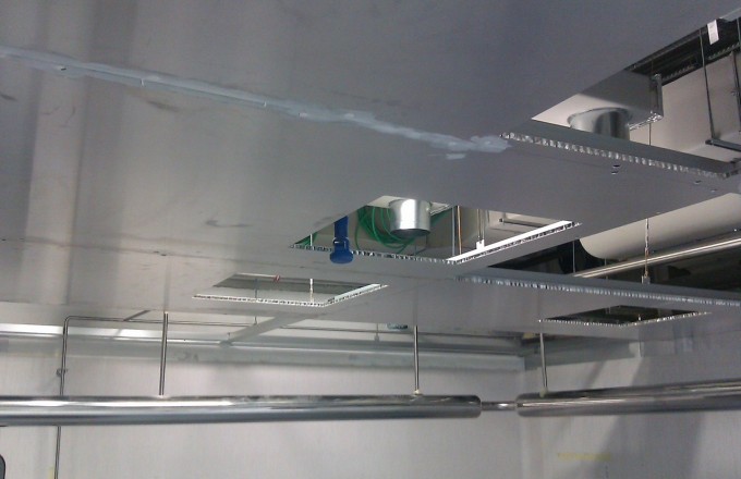 Il controsoffitto BAWER è realizzato da pannelli sospesi in metallo verniciato.